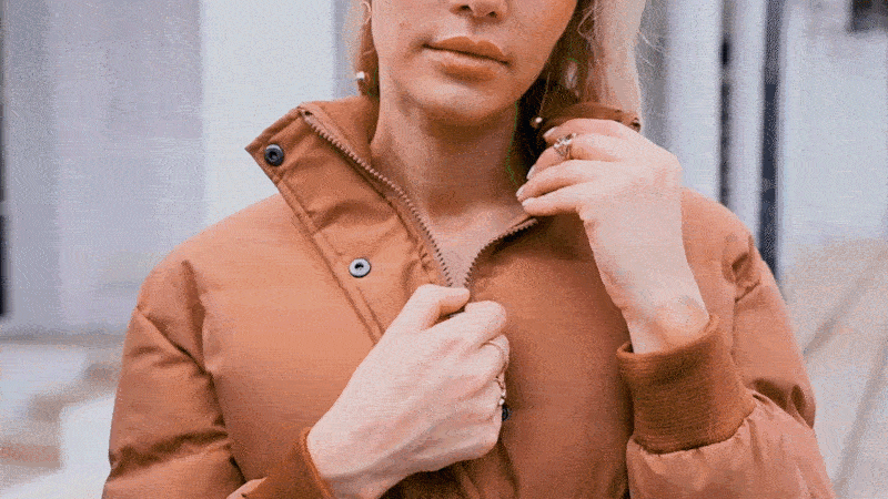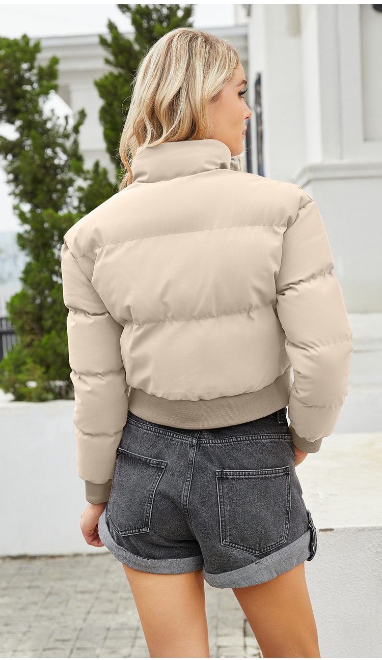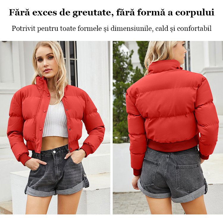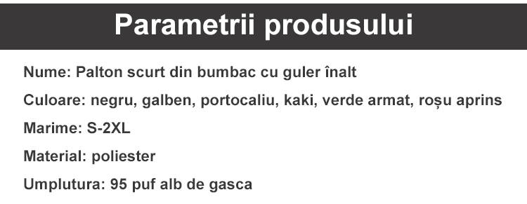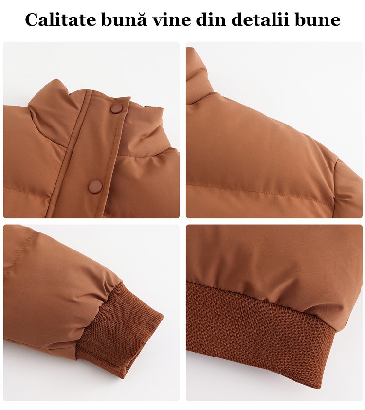 Palton scurt de puf alb de gâscă cu guler înalt